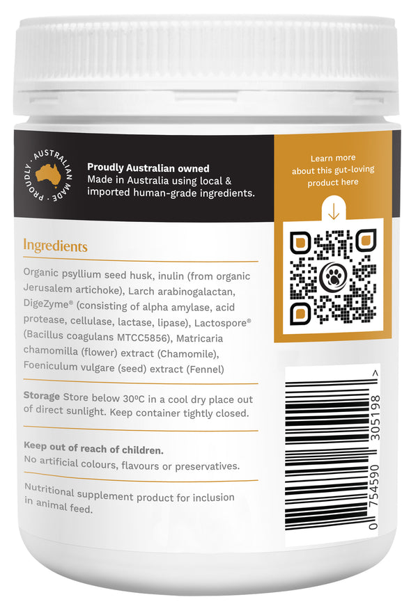 • Fibres with potent prebiotic properties which help to support the health of the gut lining, enhance nutrient absorption and support a healthy immune system.