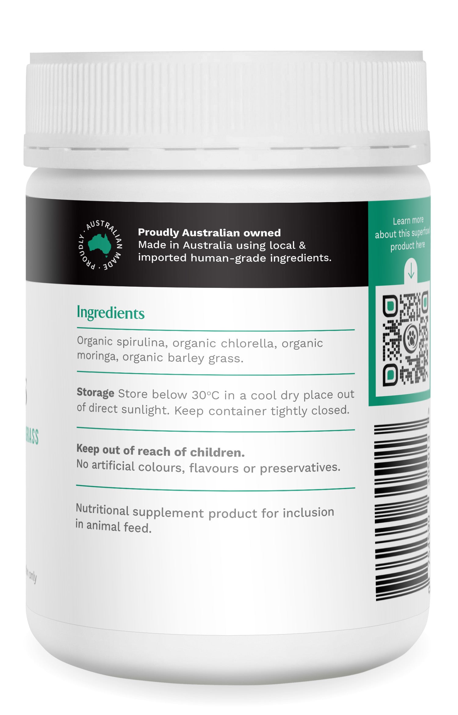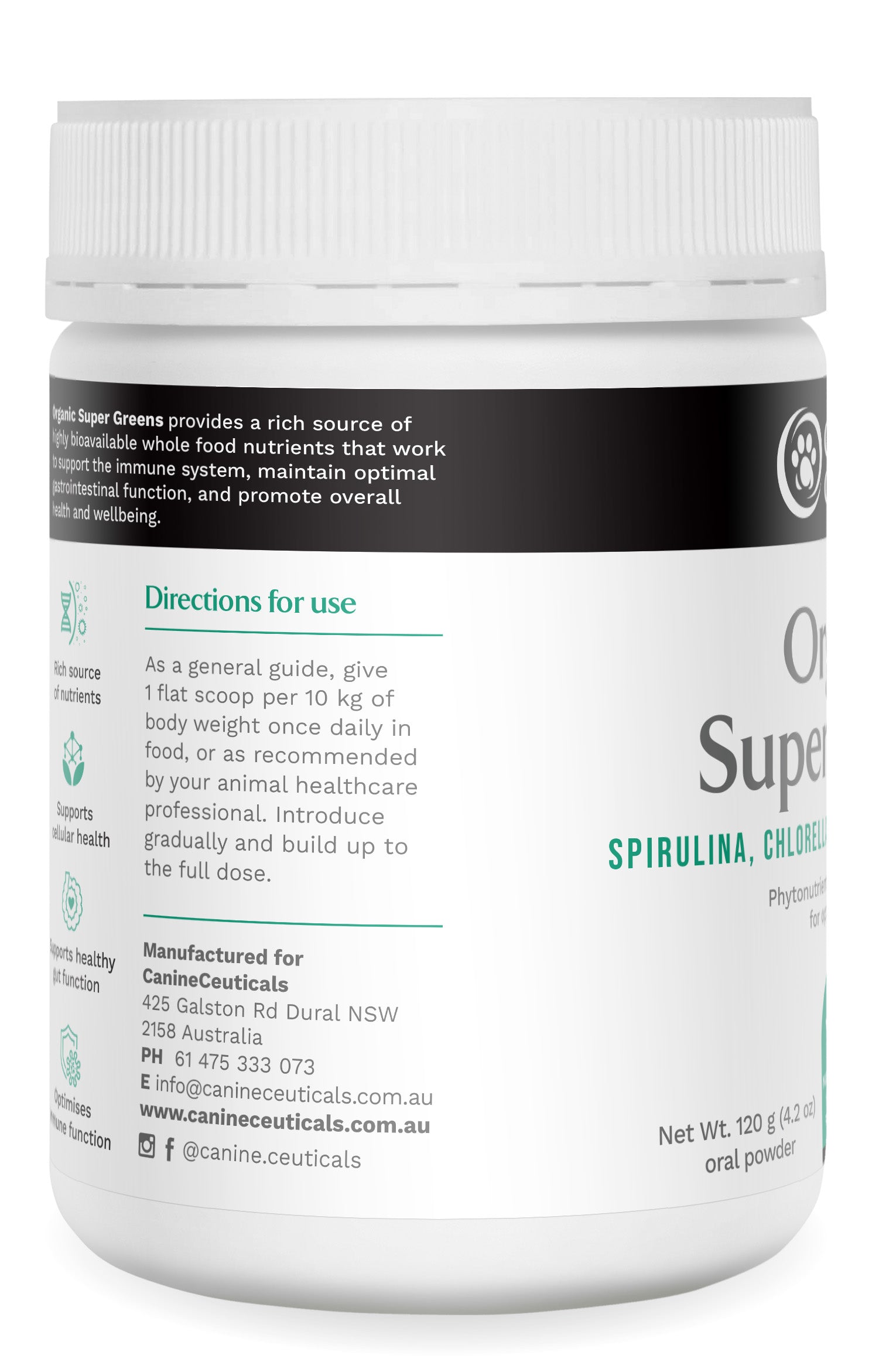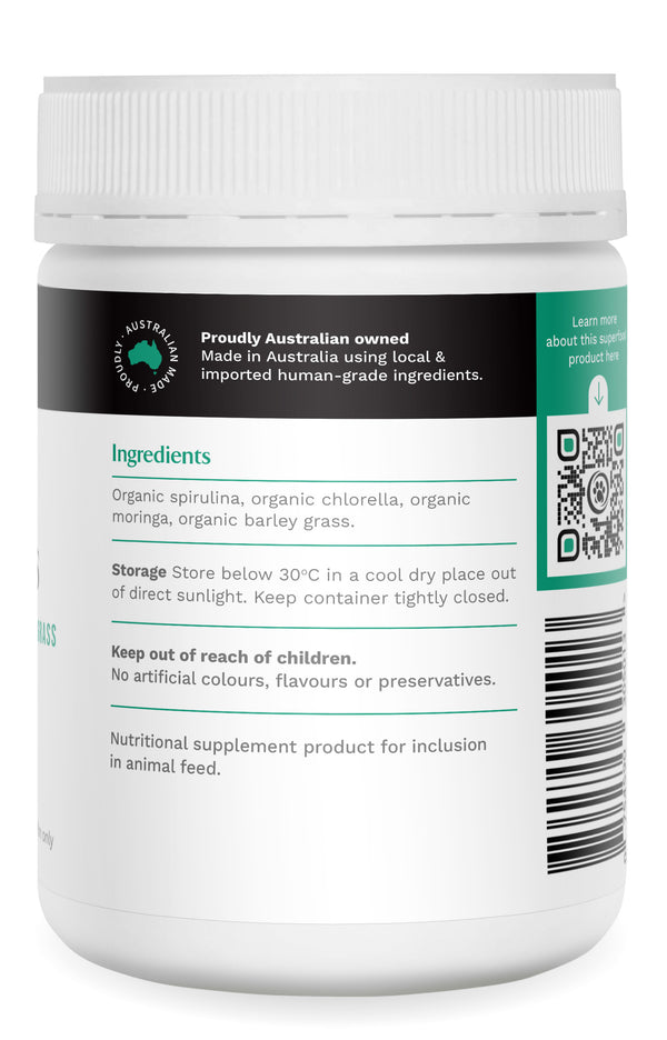 Organic Super Greens is a synergistic blend of Nature’s most nutrient-dense green superfoods. It provides a wide spectrum of highly bioavailable whole food nutrients including amino acids, vitamins, minerals, antioxidants, essential fatty acids and enzymes, which work to stimulate and strengthen the immune system, promote improved gastrointestinal health, and enhance overall health and wellbeing.